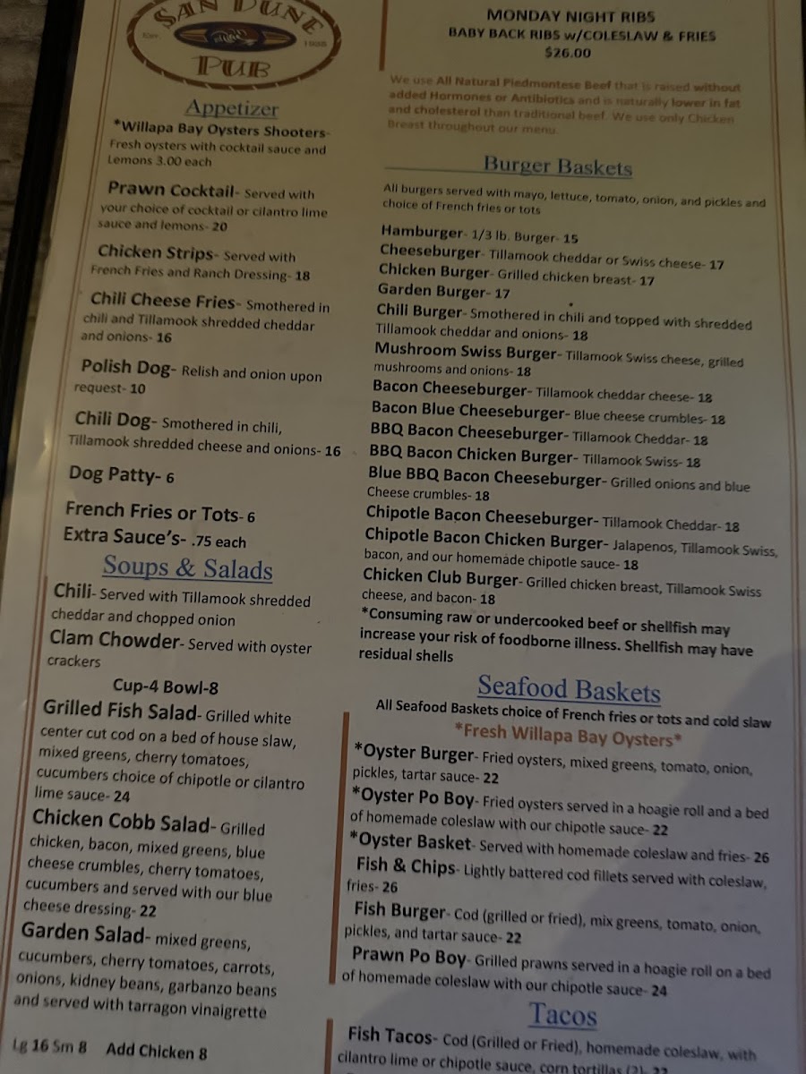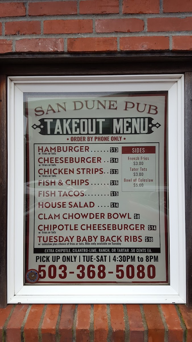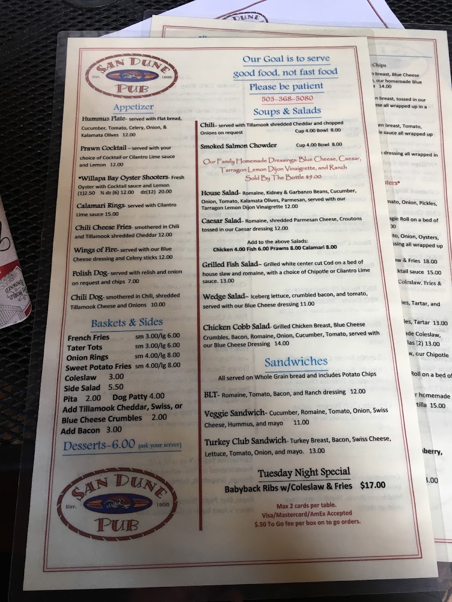 San Dune Pub Menu